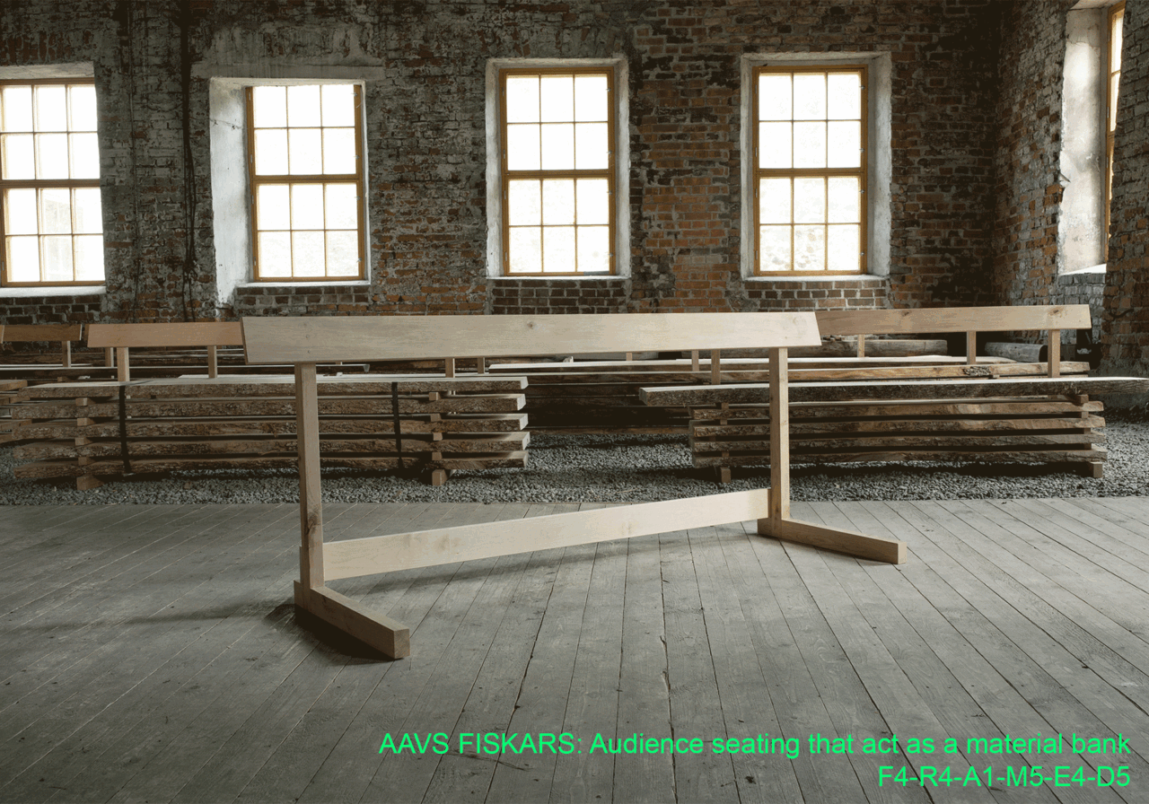 Developed during the AA Visiting School in Fiskars 2025, this project proposes a series of architectural insertions for Valimo, former old foundry currently acting as a local cultural venue. Among these, the audience seating is conceived not only as furniture but as a material bank for future use.